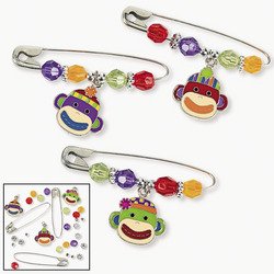 12 Individually Sealed, Sock Monkey Pin Craft Kit. Introduce this classic toy to a new generation of crafters with this Sock Monkey Pin Craft Kit. Easy to create and fun to wear for young or old, these colorful pins are sure to bring smiles to the faces of all who see it. Includes 1/4" plastic beads and 3/4" enamel charm on a 2 1/4" metal pin. All craft kit pieces are pre-packaged for individual use. Kits include instructions and extra pieces.