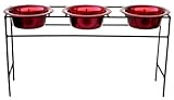 Platinum Pets TMDS64RED, The platinum pets triple modern diner stand is made of wrought iron and comes with three stainless steel 64-ounce extra wide-rim embossed powder coated bowls. Easy to remove for feeding and cleaning, also dishwasher safe. Will not chip, crack or rust. ...