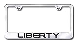 Beautiful Jeep Liberty Custom License Plate Frame. Instead of advertising your car dealership's name, place this quality frame around your license plates to show your vehicle pride. Our distinctive logo license plate frames are custom-made in the US, include a lifetime replacement warranty and are sure make your vehicle stand out! Great gift item. See our selection of front plates too.