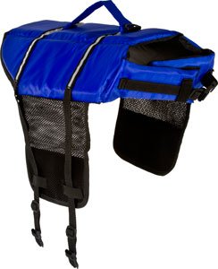 Discount Ramps , Medium Blue Dog Life Jacket Dog life preserver jacket with straps designed to fit a 24-28" dog chest. Includes a 17"L x 14"W float jacket with 8-1/4"L x 9-1/2"W Velcro flaps. Features a built-in 7-1/2" carrying handle with leash attachment loop, and (2) reflective safety strips Ideal for boating and water recreation.